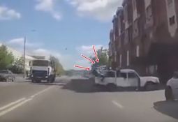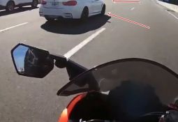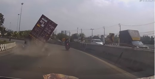 Motociklists gatavojas apsteigt konteinervedēju pa labo pusi, taču ieraugot, ka tas sāk svērties, nobremzē un izglābj savu dzīvību. Lasīt vairāk