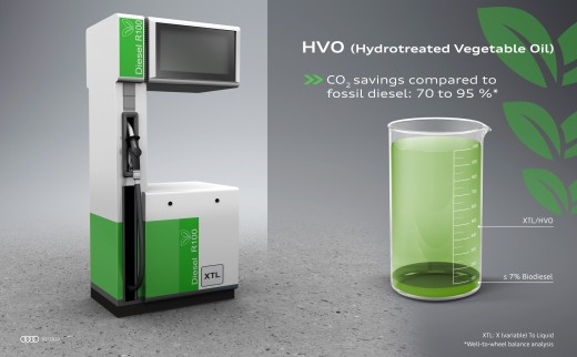 Audi modeļus ar V6 dīzeļdzinējiem, kuru jauda sasniedz 210 kW (286 ZS) un kas no uzņēmuma rūpnīcām izbrauks no februāra vidus, iespējams uzpildīt ar HVO degvielu atbilstoši Eiropas standartam NE 15940. Hidrogenētā augu eļļa ir ilgtspējīga degviela, kas nodrošina iespēju CO2 izmešus samazināt par aptuveni 70-95 % salīdzinājumā ar fosilo dīzeļdegvielu. Vēl viena HVO priekšrocība ir tās ievērojami augstākais cetānskaitlis, kas nodrošina efektīvāku un tīrāku sadegšanu salīdzinājumā ar tradicionālo dīzeļdegvielu. “Tā kā HVO cetānskaitlis ir par aptuveni 30 % augstāks, tiek uzlabota sadegšana dzinējos. Šī fakta radīto pozitīvo ietekmi visizteiktāk iespējams pamanīt, iedarbinot aukstu dzinēju. Mēs šo ietekmi pirms apstiprinājuma piešķiršanas pārbaudījām uz dažādām detaļām, veiktspējas un izplūdes gāzēm,” skaidro Audi V-TFSI, TDI un PHEV piedziņas sistēmu izstrādes vadītājs Matiass Šobers (Matthias Schober).