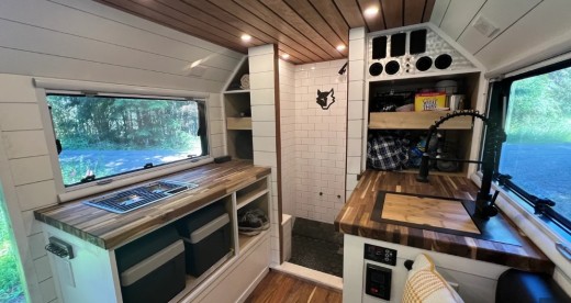 No alumīnija veidotajā virsbūvē iebūvēts dzīvojamais bloks ar salokāmu dīvānu un galdu, virtuves sekcija ar nepieciešamo aprīkojumu un dušas telpa ar tualetes podu, kas „prot” paslēpties sienā, lai iegūtu vairāk telpas. Divvietīgā guļamvieta ar 1,52 m platu gultu iekārtota virs vadītāja un pasažiera galvām, bet aizmugurē atrasta vieta apjomīgam bagāžniekam, kur noglabāti dažādi instrumenti, kāpnes, rezerves riepa un gāzes balons.