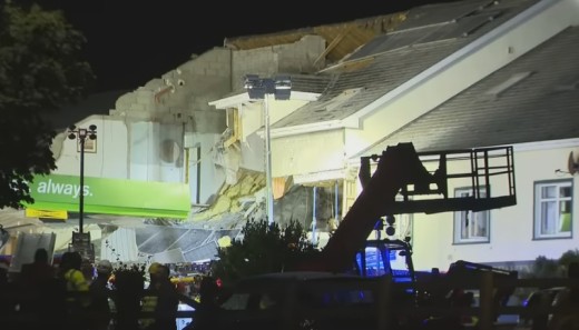 Eksplozijā sagruva degvielas uzpildes stacija, kurā bija veikals un pasta nodaļa.