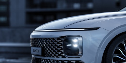 Toties attiecībā uz pašmāju tirgu viss skaidrs – Grandeur tajā startēs jau šī gada beigās, mēģinot pircēju pārliecināt ar pilnībā jaunu dizainu, kura galvenie elementi ir gludais motora pārsegs, zemu novietotie lukturi un divdaļīgā šūnveida radiatora reste, kam tagad piešķirta taisnstūra forma. Vēl priekšpuse zīmīga ar šauro dienasgaismas diožu līniju pārsega apakšā, bet aizmugure – ar tādu pašu horizontālu līniju, kam arī lukturu funkcija.