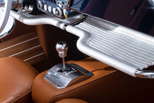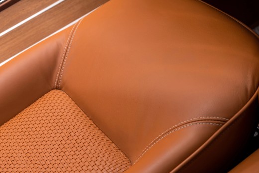Asociāciju ar dārgām jahtām pastiprina hromētas detaļas un plaukts uz priekšējā paneļa no kopā saaustiem diegiem, ko papildina alumīnija un koka dekori.