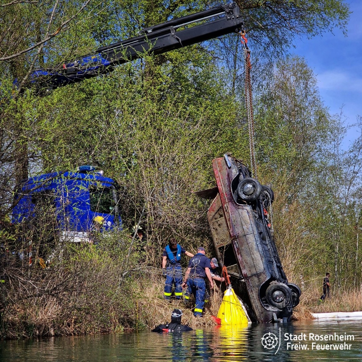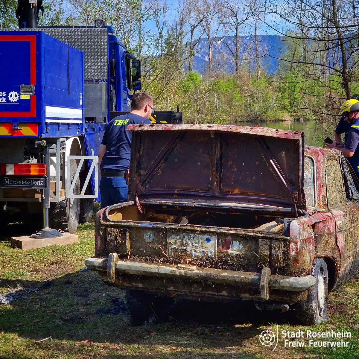Vācijas pilsētas Rozenhaimas ugunsdzēsēji izcēluši no ezera pagājušā gadsimta septiņdesmito gadu beigās nogrimušu Fiat sedanu.
