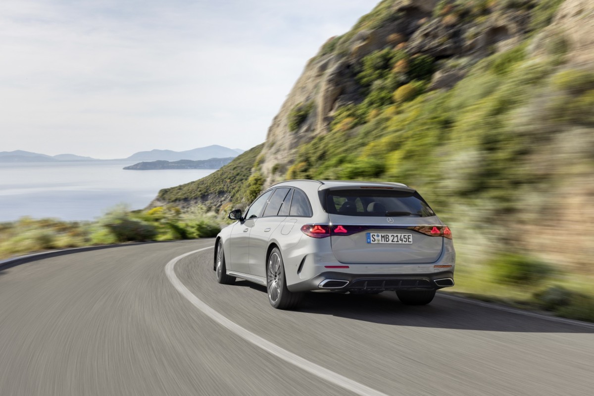 Jaunās paaudzes modelis (W214) papildinās E-klases sedanu, kas pirmizrādi piedzīvoja šopavasar. Universāls ir 4949 mm garš, 1880 mm plats un 1469 mm augsts, riteņu bāzei sasniedzot 2961 mm. Salīdzinot ar W213, jaunais modelis visos parametros nedaudz pielicis, tajā skaitā bagāžas nodalījuma tilpumā, kas tagad būs 615 litri standarta konfigurācijā vai 1831 litrs, ja sēdekļu atzveltnes nolocītas. Universāla PHEV hibrīdmodifikācijai baterija bagāžas telpu diezgan būtiski samazinājusi, tādēļ šajā gadījumā jārēķinās ar 460-1675 litru ietilpību.
