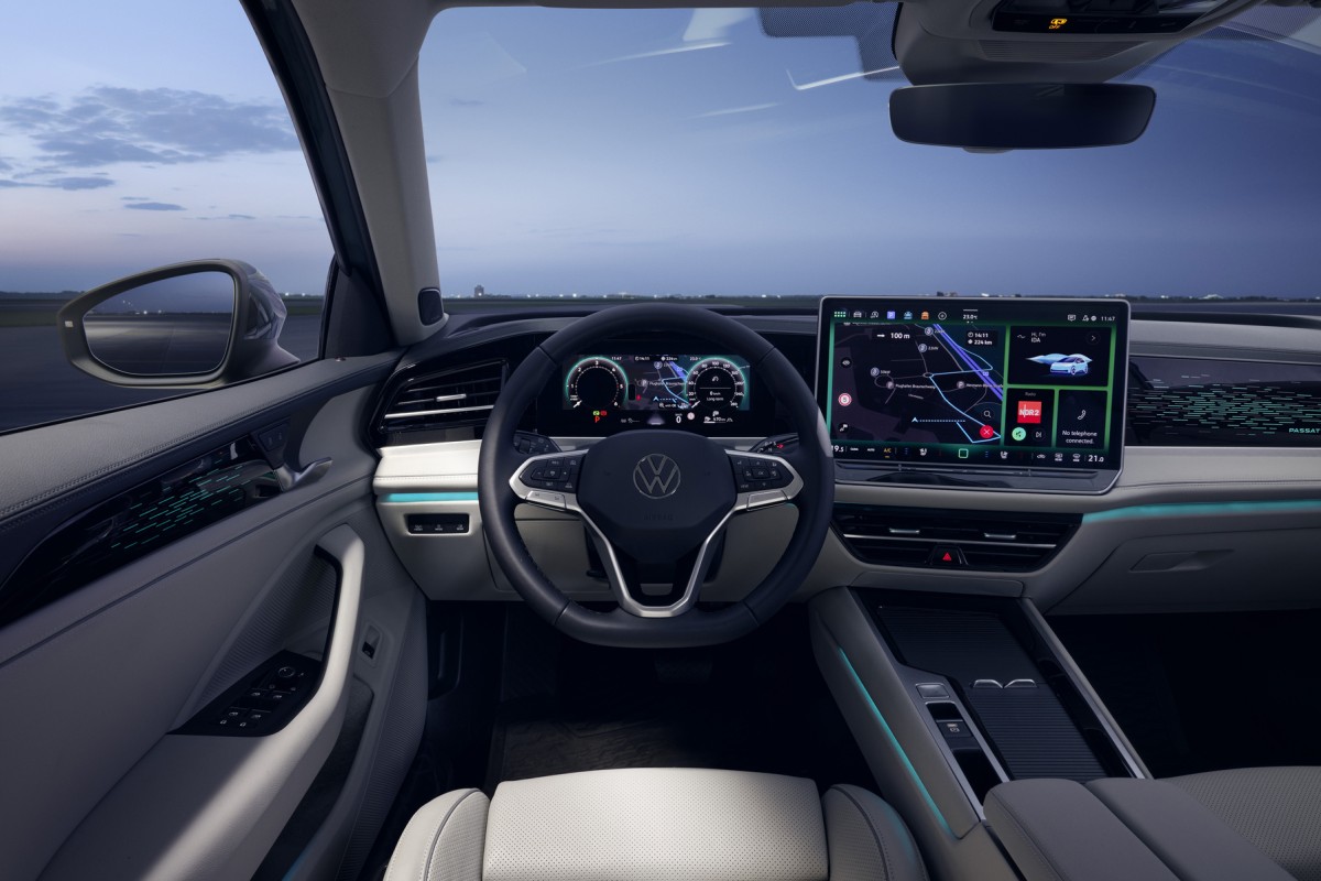 Salonā ciparu mērinstrumenti (10,25 collas) un multivides ekrāns (12,9-15 collas) ar Volkswagen jaunāko MIB 4 tehnoloģiju, kas biežāk lietojamās izvēles un klimatkontroles vadību patstāvīgi rāda attiecīgi ekrāna augšējā un apakšējā malā.