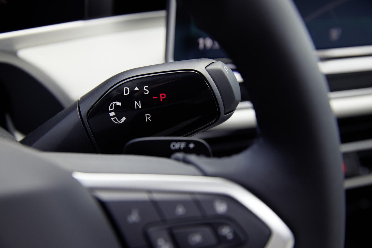 Viduskonsolē tikai motora starta poga, stāvbremze un sīklietu nodalījumi, bet ātrumpārslēgs ar pozīcijām D, N un R pārceļojis uz stūres statni. Vējstikla tīrītāju vadība integrēta pagrieziena rādītāju svirā, kas mazliet neierasti, taču pārsvarā viss tik un tā ir iestatīts uz "Auto".