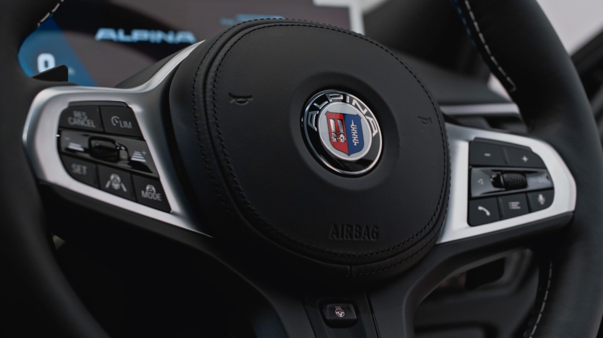 Salonā Alpina uzraksti redzami uz sliekšņiem, bet īpaša plāksnīte viduskonsolē vienmēr atgādinās par ekskluzīvās versijas nosaukumu un konkrētā eksemplāra kārtas numuru. Komplektā arī balto un zaļo šuvju kombinācija apdarei, ar ādu apvilkta stūre ar Alpina logotipu, ādas sēdekļi ar izšūtu logotipu.