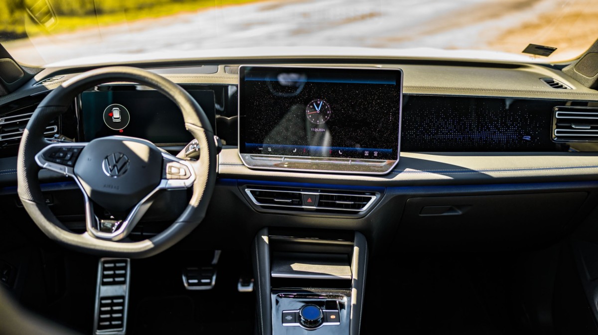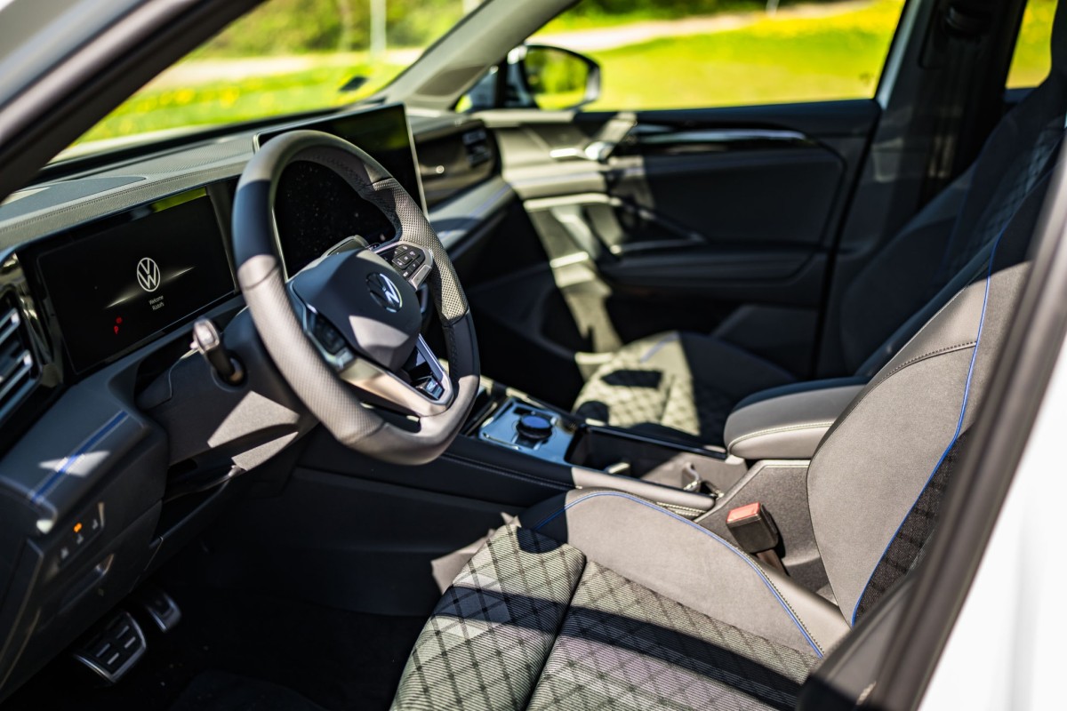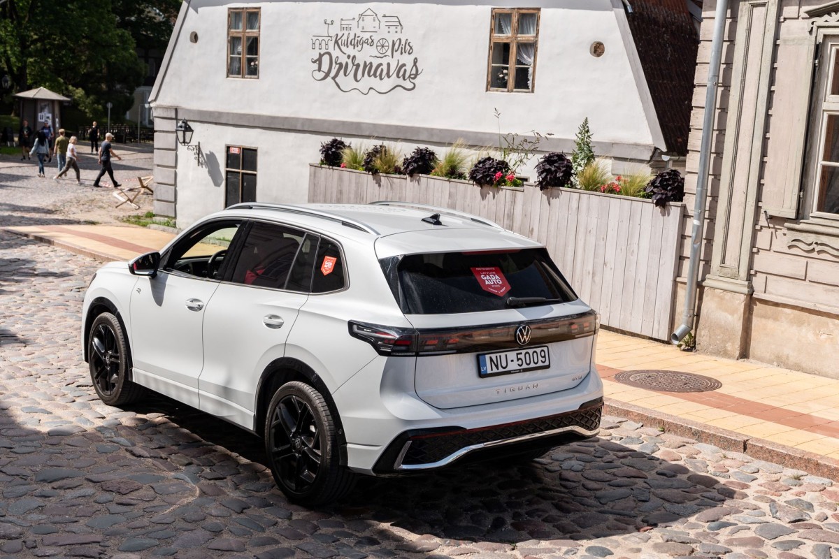 Volkswagen ļaudis ir padomājuši par vairākām sīkām, taču praktiskām lietām. Piemēram, pie griestiem ir nodalījums saulesbrillēm, bet priekšā zem vidus konsoles ir atsevišķs un ērts nodalījums telefonu uzlādei: ieliec telefonu tam paredzētajā ligzdiņā un aizver vāciņu, kas vienlaikus ir augšējā nodalījuma pamats. Telefons stabili tiek nofiksēts, nekratās un neslidinās. Ja par braukšanu, tad šis nav tas auto, pie kura stūres izdosies izbaudīt vētrainas emocijas. Te nebūs satriecoša paātrinājuma vai nervus kutinošas motora rēkoņa. Tiguan ir automobilis, kas domāts vienkāršai un drošai braukšanai no viena punkta uz otru. Taču par gaudenu to noteikti nevar saukt, jo 1,5 litru benzīna motors komplektā ar "mild hybrid" elektromotoru vajadzības gadījumā noorganizē diezgan pieklājīgu paātrinājumu.”