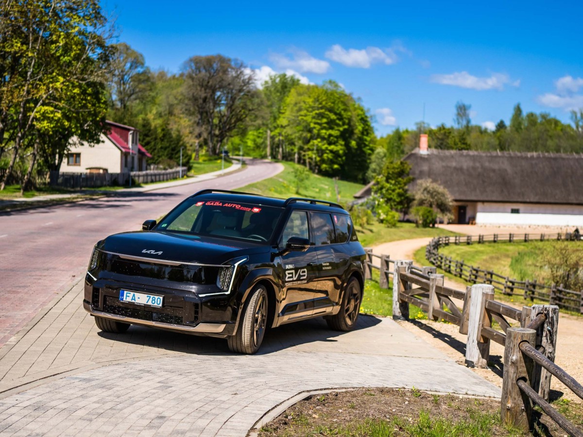 Mašīnas gaita ir pietiekami mīksta, arī uz zemes ceļa auto jūtas ērti. Mežā pēc sēnēm ar to var droši braukt, kārtīgā bezceļā gan personīgi man būtu bail to dzīt, jo ej nu pēc tam dabū laukā tādu gabarītu vāģi no smiltīm vai dubļiem - galu galā, sver tas virs divarpus tonnām. Šajā ziņā taisnība tiem, kuri saka, ka “EV9” drīzāk ir minivens, nevis draņķīgiem ceļiem domāts krosovers.