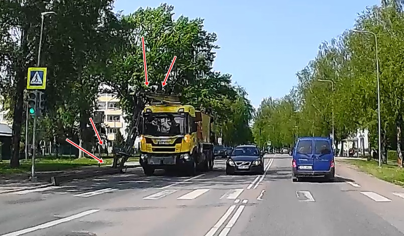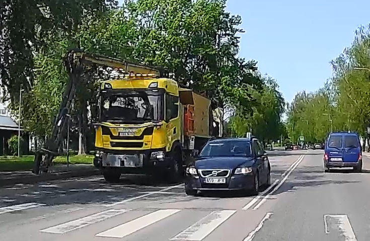 Pensijā varbūt nē, bet var darīt citus darbus, kamēr ceļa bedrītes aizlāpa šāda tehnika - speciāls auto ar vienu operatoru, kas grozot "snuķi", piepilda bedres ar smalkās frakcijas šķembām.