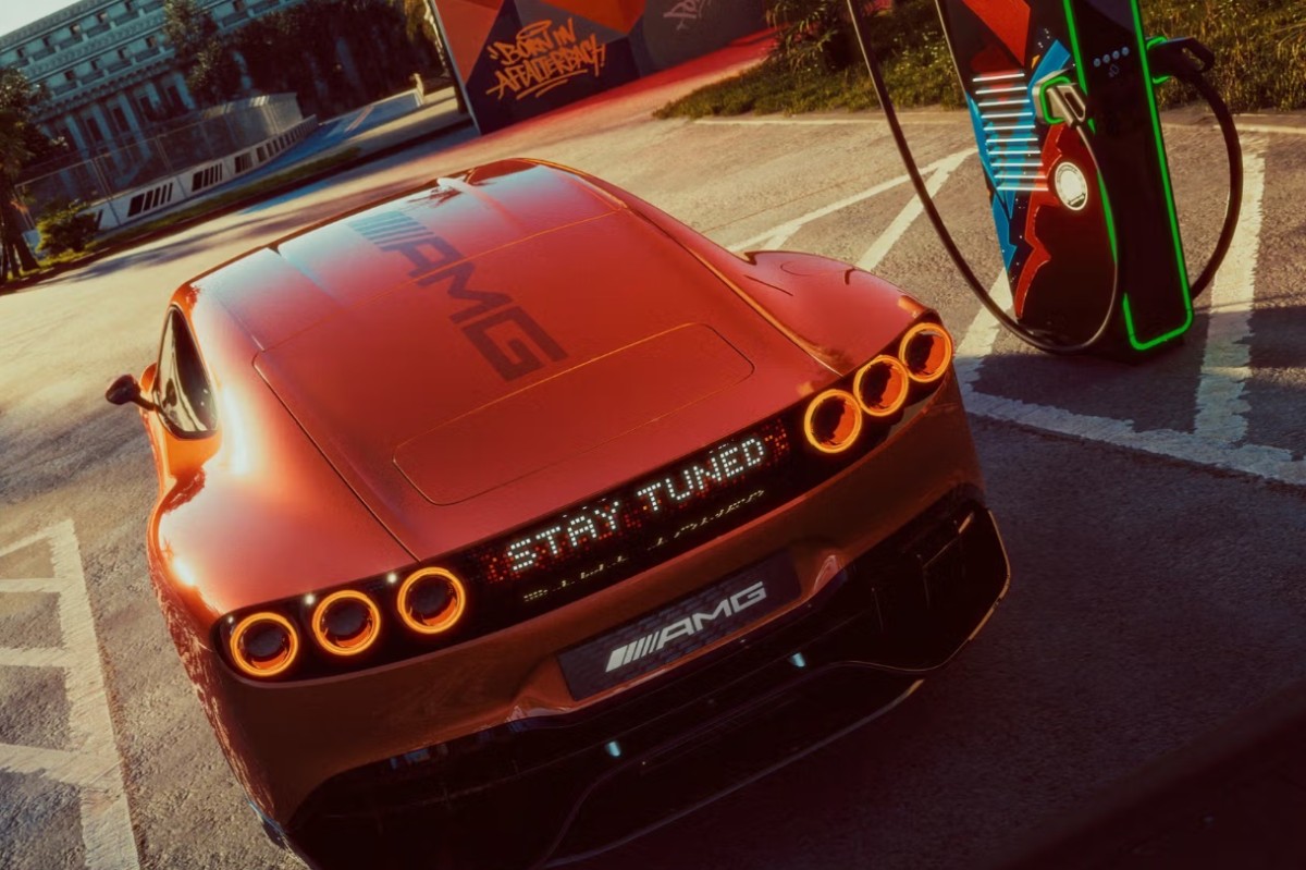 Priekšpusē iebūvētie skaļruņi imitē V8 dzinēja skaņu, bet LED apgaismojuma bloks aizmugurē var attēlot informāciju teksta vai animācijas veidā. Salonā Mercedes-AMG galvenokārt paļaujas uz biotehnoloģiskiem materiāliem.