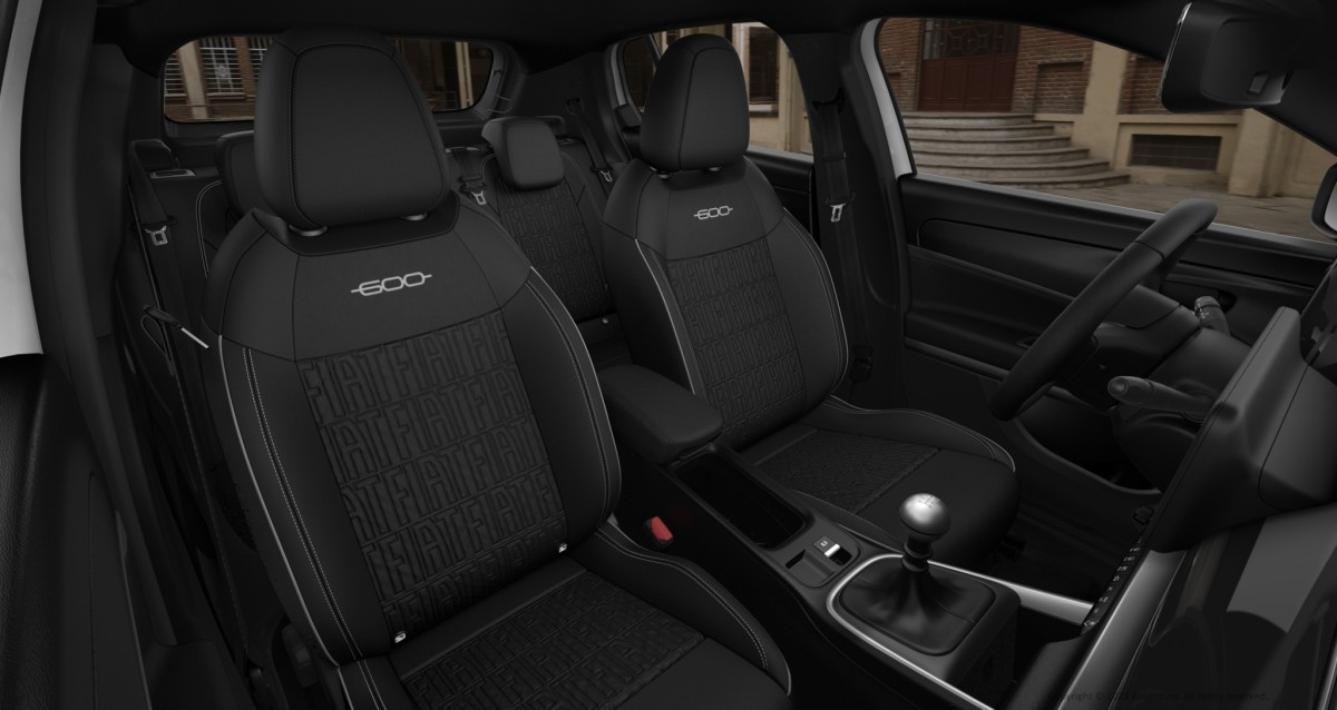 Salonā dominē melnā krāsa – sēdekļi ir ar melniem pārvalkiem un baltiem Fiat logotipiem, savukārt griestu apdare un priekšējā paneļa elementi veidoti tumšos toņos. Komfortu nodrošina apsildāmi priekšējie sēdekļi un automātiskā klimata kontrole, bet aprīkojumā iekļauta arī bezatslēgas piekļuves sistēma, elektriskā stāvbremze un aizmugurējie stāvvietas sensori.