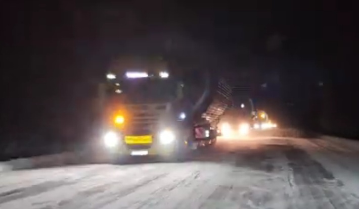 Vairāki kravas auto 2.decembra naktī pārvieto lielgabarīta kravu pa A5 šoseju. Lasīt vairāk