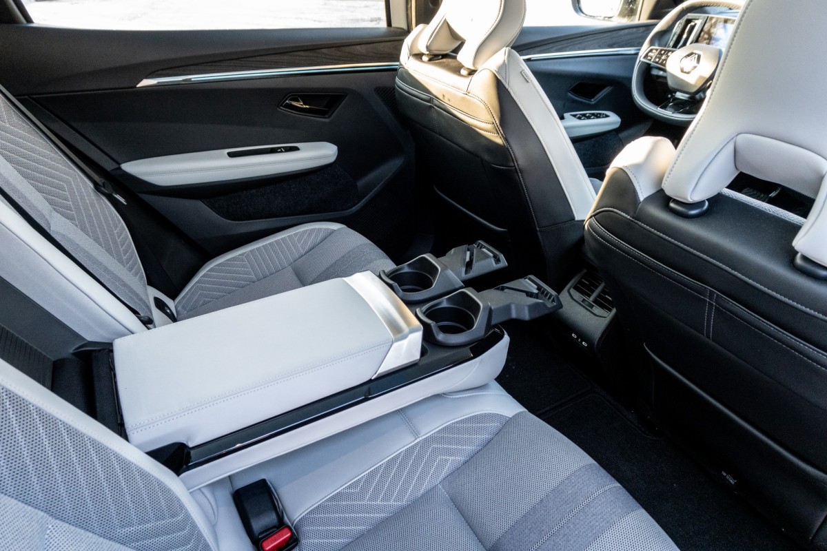 Scenic E-tech piedāvā plašu telpu salonā, tostarp arī aizmugurē sēdošajiem. Kāju, plecu un galvas zonā ir plašums, lai ērti baudītu braucienu. Vienīgais trūkums ir tas, ka aizmugurējo sēdekļu atzveltnes nav iespējams atgāzt citos leņķos, kā arī sēdekļi nav bīdāmi uz priekšu un atpakaļ. Toties ir advancēts elkoņu balsts ar matētu uzglabāšanas nodalījumu, 2 USB-C lādēšanas ligzdām, glāžu turētājiem un telefona/planšetdatora statīviem, kurus iespējams pagriezt dažādos virzienos. Aizmugurējās pasažieru durvis ir izveidotas limuzīniski platas, kas atvieglo gan iekāpšanu/izkāpšanu, gan arī darbošanos gar bērnu sēdeklīšiem. Taču šaurās stāvvietās gan būs apgrūtinoši piekļūt aizmugurējai rindai.