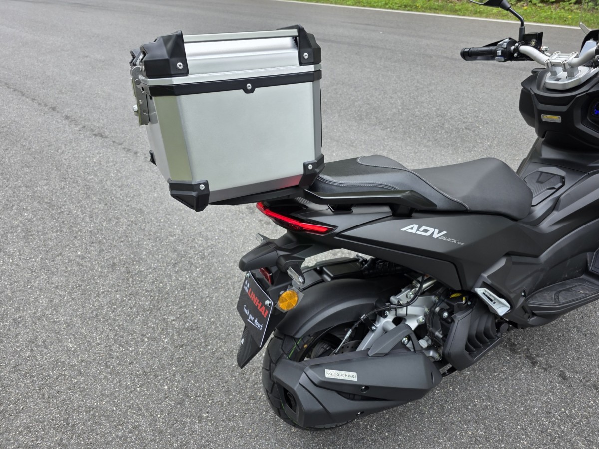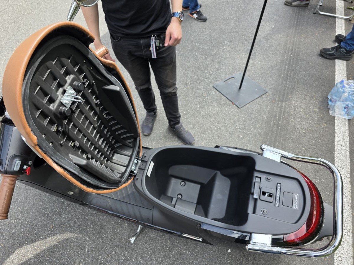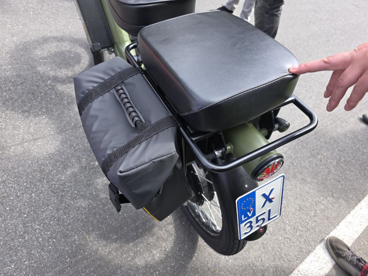 • Zem sēdekļa nevar novietot ķiveri, bet komplektācijā ir iekļauta aizmugurē stiprināma kaste.