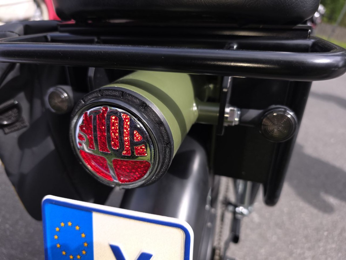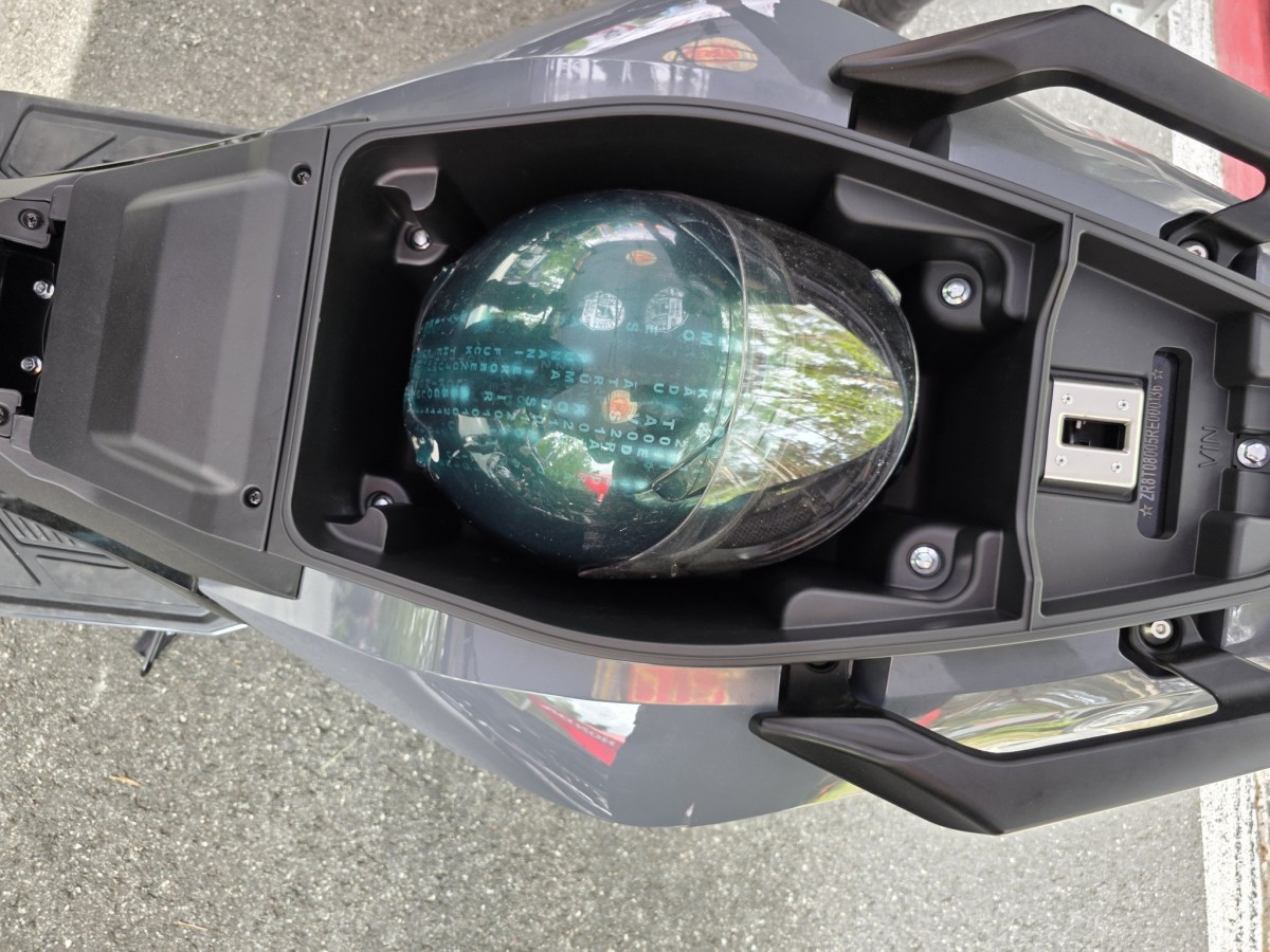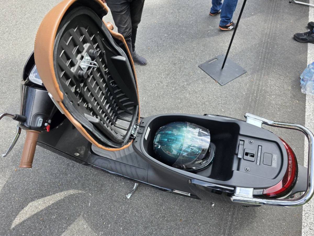 • Zem sēdekļa nevar novietot ķiveri, bet komplektācijā ir iekļauta aizmugurē stiprināma kaste.
