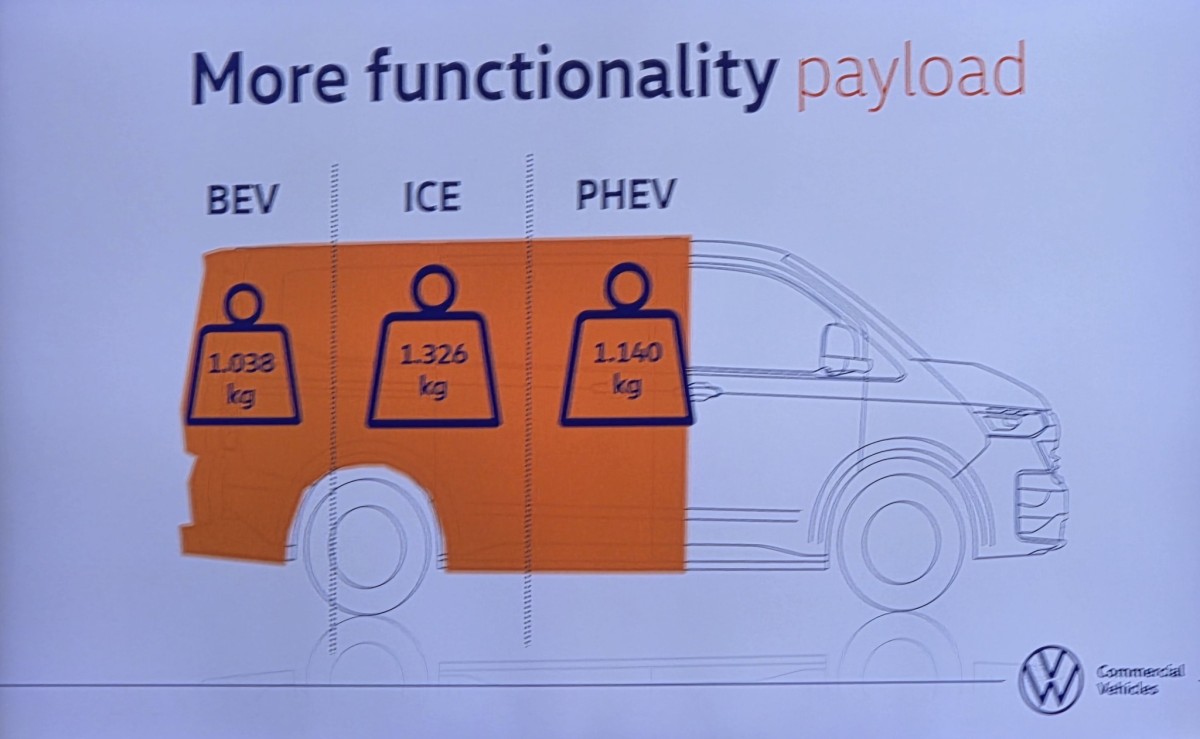 Vēlāk būs arī daļēji elektriskās un pilnībā elektriskās versijas. Lādējamais jeb “plug-in” hibrīds ar 2.5 litru benzīna dzinēju un 229 Zs kopējo jaudu ar elektrību spēs nobraukt 60 kilometrus. Savukārt elektriskie “Transporter” būs pieejami ar 54 vai 83 kWh (bruto) baterijām un ar jaudu no 114 līdz 286 zirgspēkiem. Atkarībā no versijas elektriskā “Transporter” sniedzamība būs līdz 357 kilometriem.