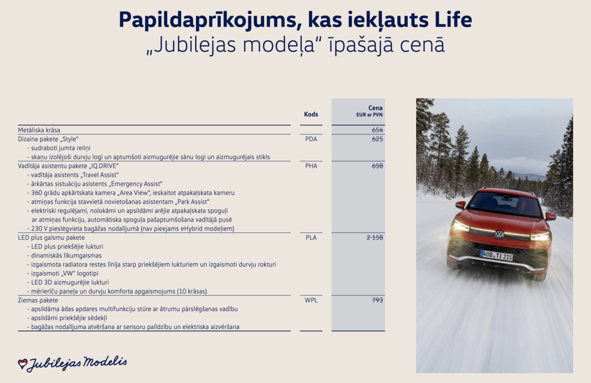 "Volkswagen Tiguan" jubilejas piedāvājums Foto: Ekrānšāviņš no "Volkswagen" cenu lapas