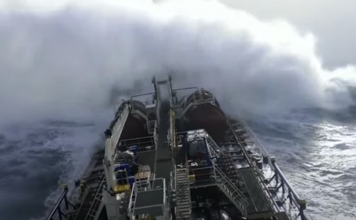 Ķīmisko produktu tankeris tiekas ar vētras saceltajiem viļņiem Atlantijas okeānā (lielākie viļņi 1:26 un 1:40). Lasīt vairāk