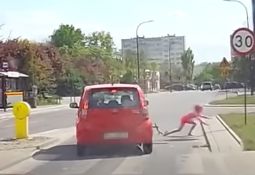 Autovadītājs aizvāc šķērsli no maģistrāles braucamās daļas. Izskatās, ka viņš darbojas ne pārāk galanti, jo, iespējams velobraucējs ir piedzēries. Lasīt vairāk