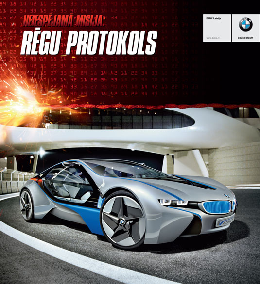 Uzmanības centrā ir augsta veiktspēja un mazāk izmešu: viens no nākamajā Toma Krūza [Tom Cruise] filmā izmantotajiem BMW automobiļiem ir BMW Vision EfficientDynamics konceptautomobilis. Tas ir atzīts par auto ar modernākajām tehnoloģijām un pārsteidzošāko dizainu starp šībrīža elektriskajiem koncepta superauto. Jau pēc dažiem gadiem sērijveidā tiks ražots BMW i8, kurš veidots, iedvesmojoties tieši no BMW Vision EfficientDynamics.
